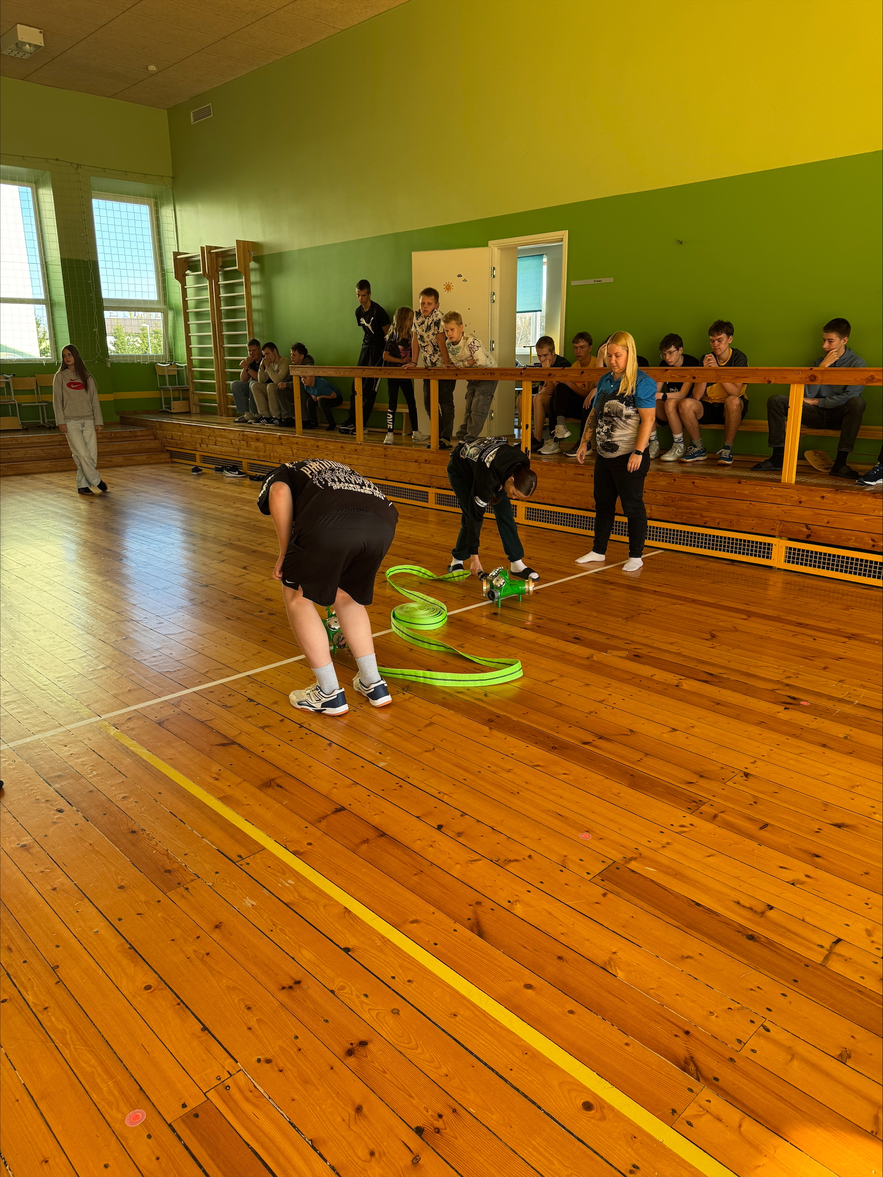 Meistrivõistlusteks tuletõrjespordis toimuvad talvel saalis ning kevadel tehakse seda õues. Võimalusel viiakse ka noored Paide, kus saab joosta/ronida ka treppidest torni. Kaspar ja Sirli panid meie õpilased proovile veevoolikute kinni-lahti ühendamisega. Väiksemad huvilised olid päris õhinal ja tegid hoogsalt kaasa. Veel näitasid nad oma töövahendeid päästeameti ja kiirabi autost. Kutsuti ka kevadel külla, et saaksid rohkem enda tegemistest ja vahendeid näidata.