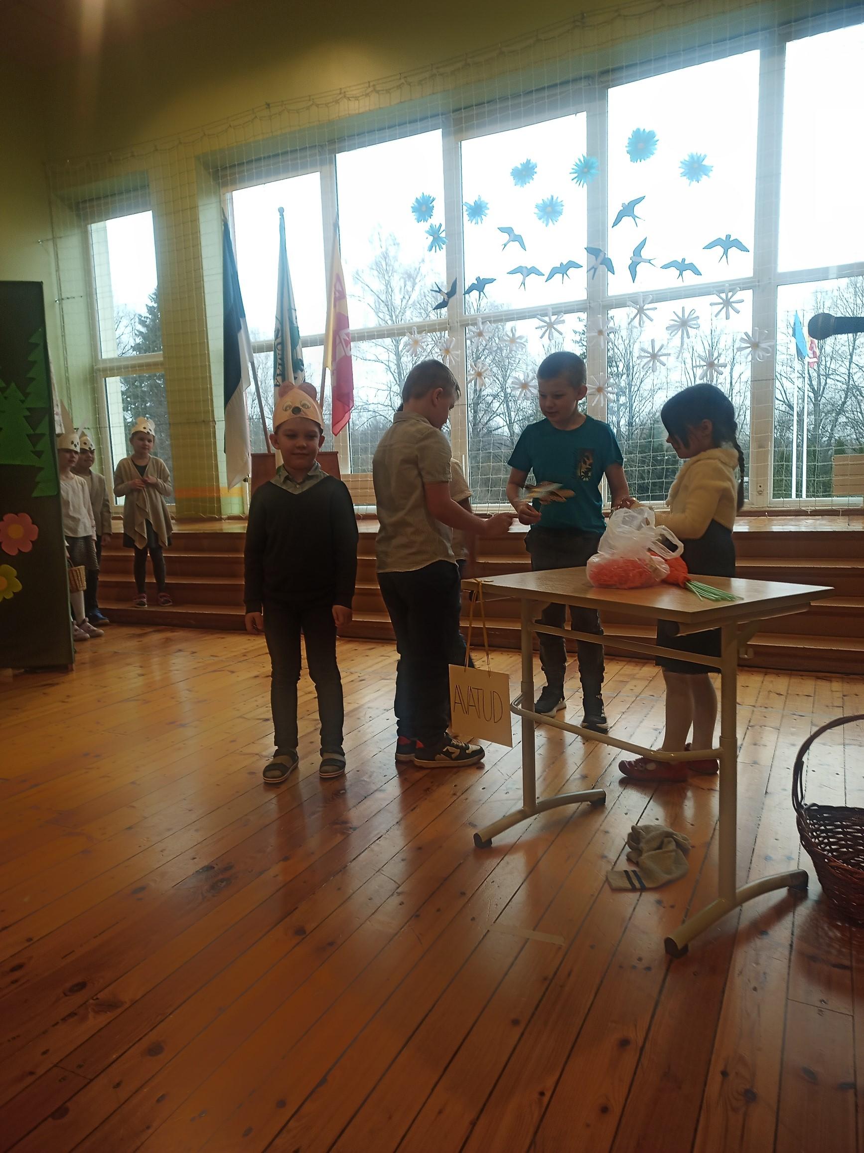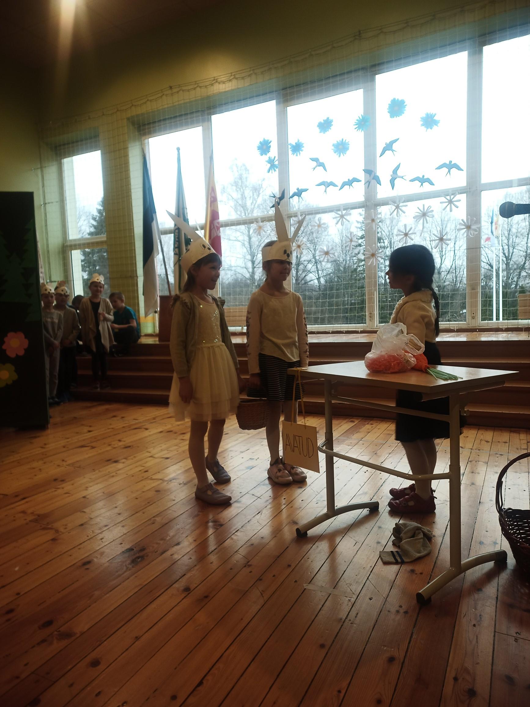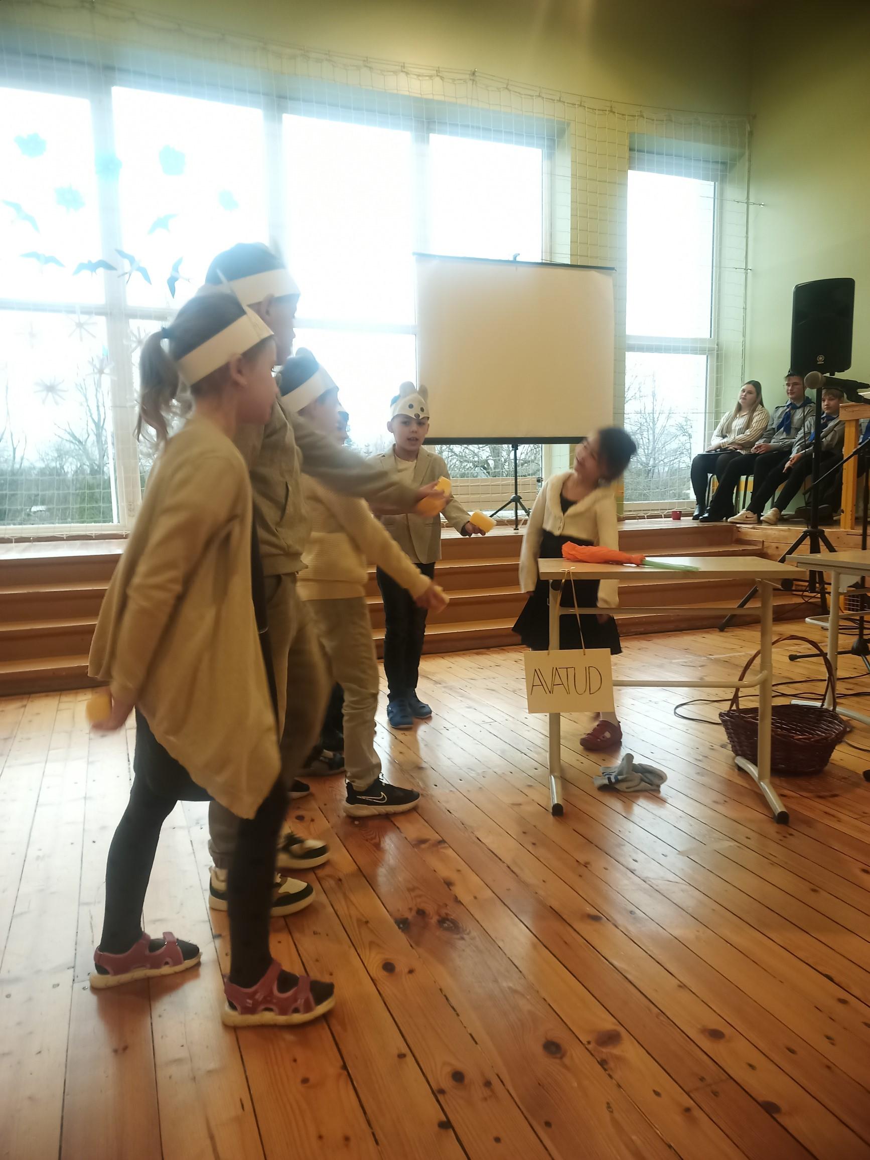 1. klassi näitetrupp esitas koomilise lühinäidendi "Kas teil juustu on?".