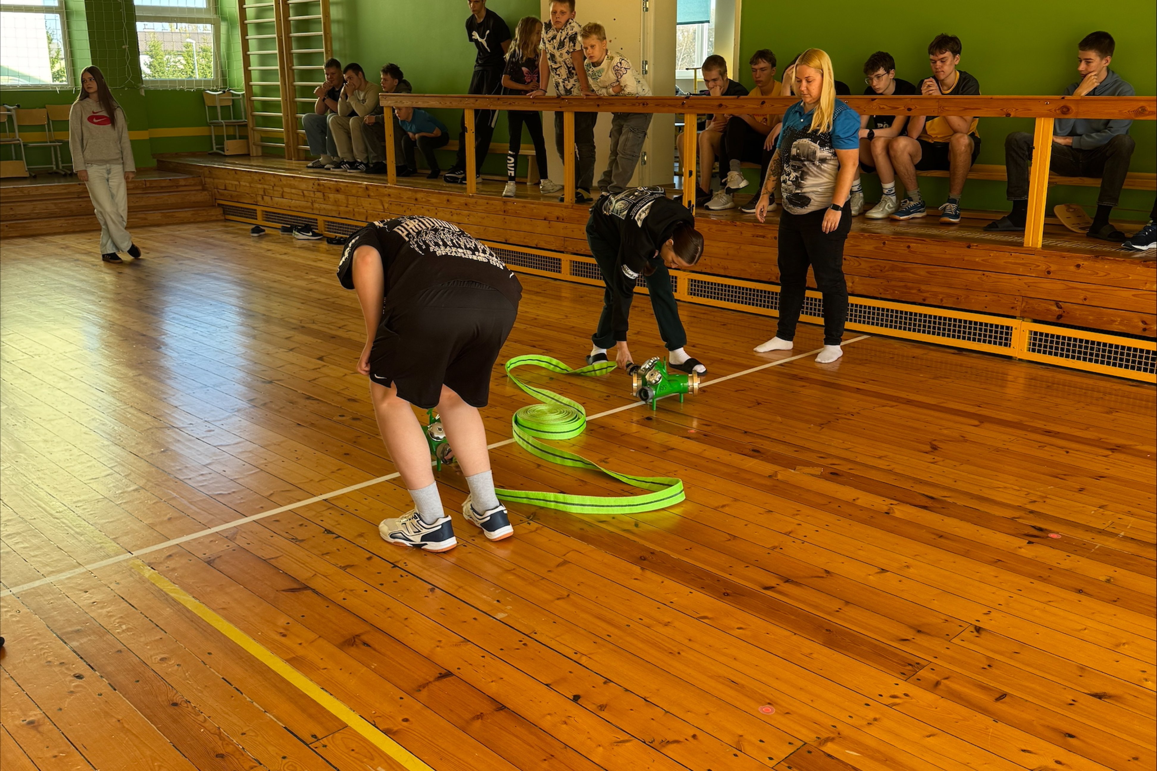 Meistrivõistlusteks tuletõrjespordis toimuvad talvel saalis ning kevadel tehakse seda õues. Võimalusel viiakse ka noored Paide, kus saab joosta/ronida ka treppidest torni. Kaspar ja Sirli panid meie õpilased proovile veevoolikute kinni-lahti ühendamisega. Väiksemad huvilised olid päris õhinal ja tegid hoogsalt kaasa. Veel näitasid nad oma töövahendeid päästeameti ja kiirabi autost. Kutsuti ka kevadel külla, et saaksid rohkem enda tegemistest ja vahendeid näidata.