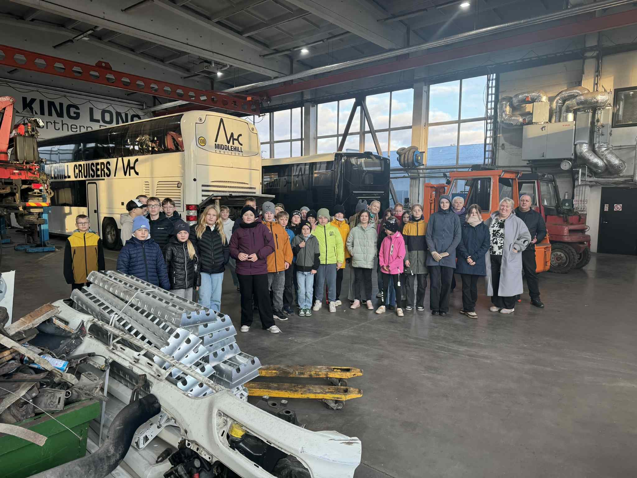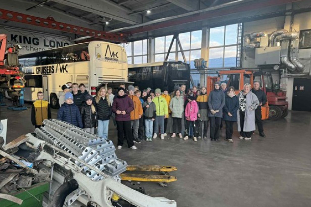 P-Trucksis viis ringkäigu läbi töökoja meister, kes tutvustas ettevõtte erinevaid hooneid – remondihoonet, kontorit, katlamaja, värvitöökodasid, puhkeruumi, tööriiete pesumaja ning päikesepaneele ja akupanka. Ettevõttes töötab 11 töötajat. Õpilastele näidati erinevaid masinaid ja tehnikat ning räägiti juurde põnevaid lugusid. Üheks meeldejäävamaks näiteks oli lugu nende kõige hinnatumast maalerist, kes on värvipime – ometi on ta oma töö nii hästi selgeks õppinud, et värvipimedus pole talle takistuseks.