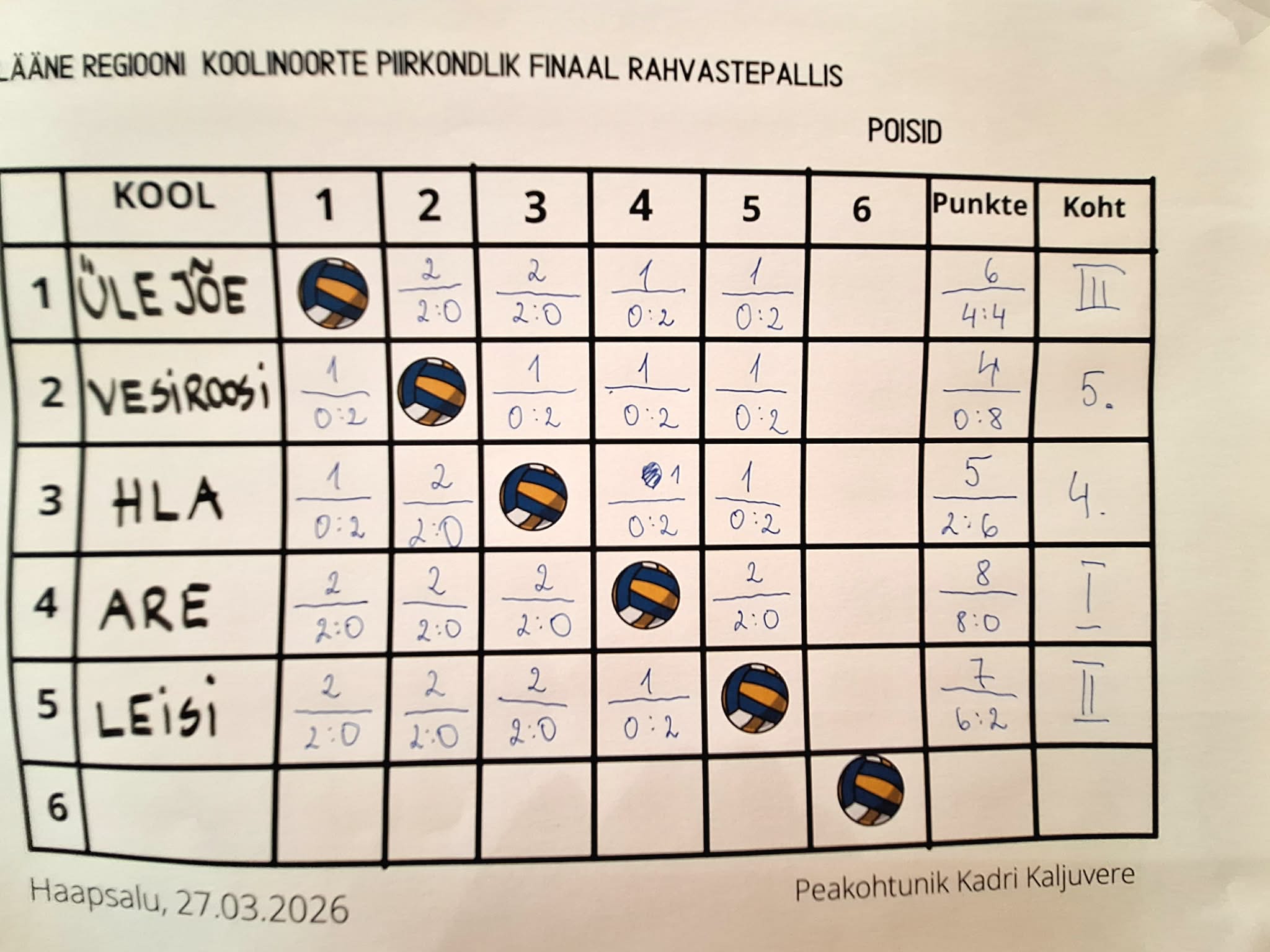 Reedel, 27. märtsil 2026 toimusid Haapsalus Lääne regiooni koolinoorte piirkondlikud finaalvõistlused rahvastepallis 1.–3. klassi poistele ja tüdrukutele. Are Kooli poiste võistkond teenis pääsu finaalturniirile tänu suurepärasele esitusele maakondlikel võistlustel, kus saavutati esikoht.