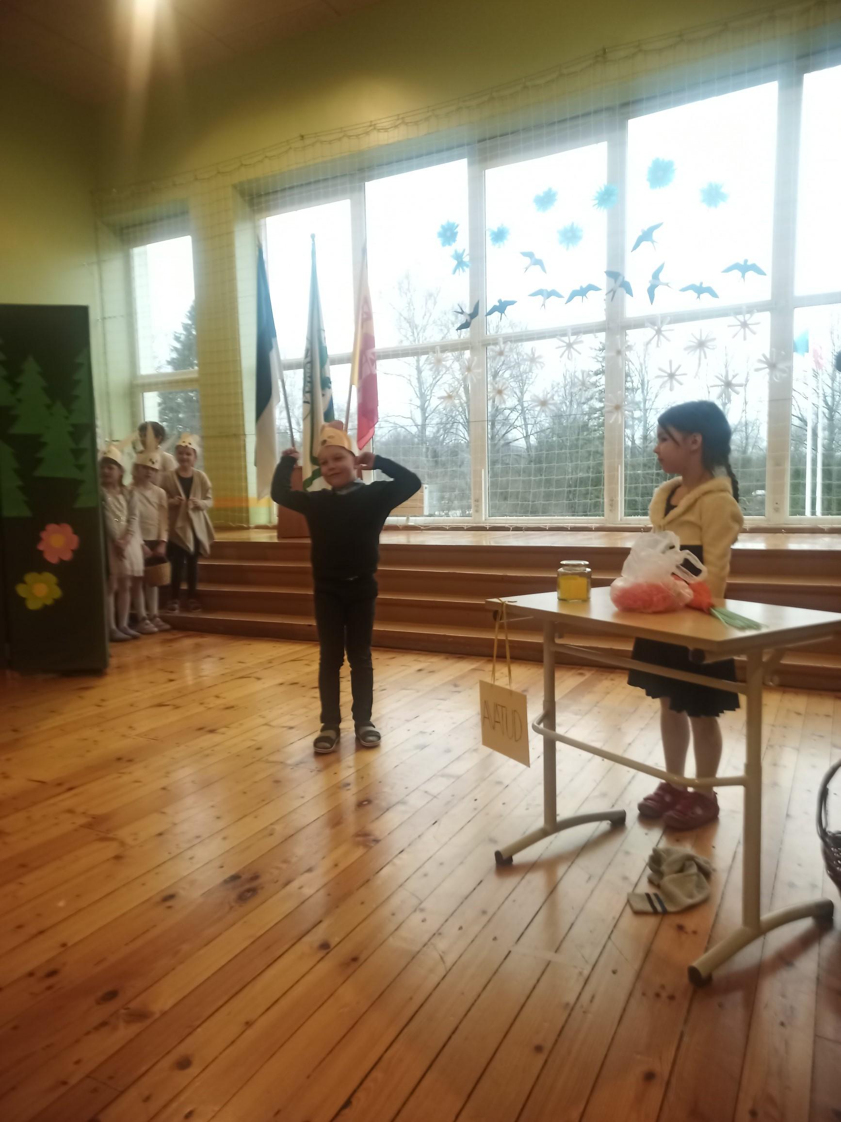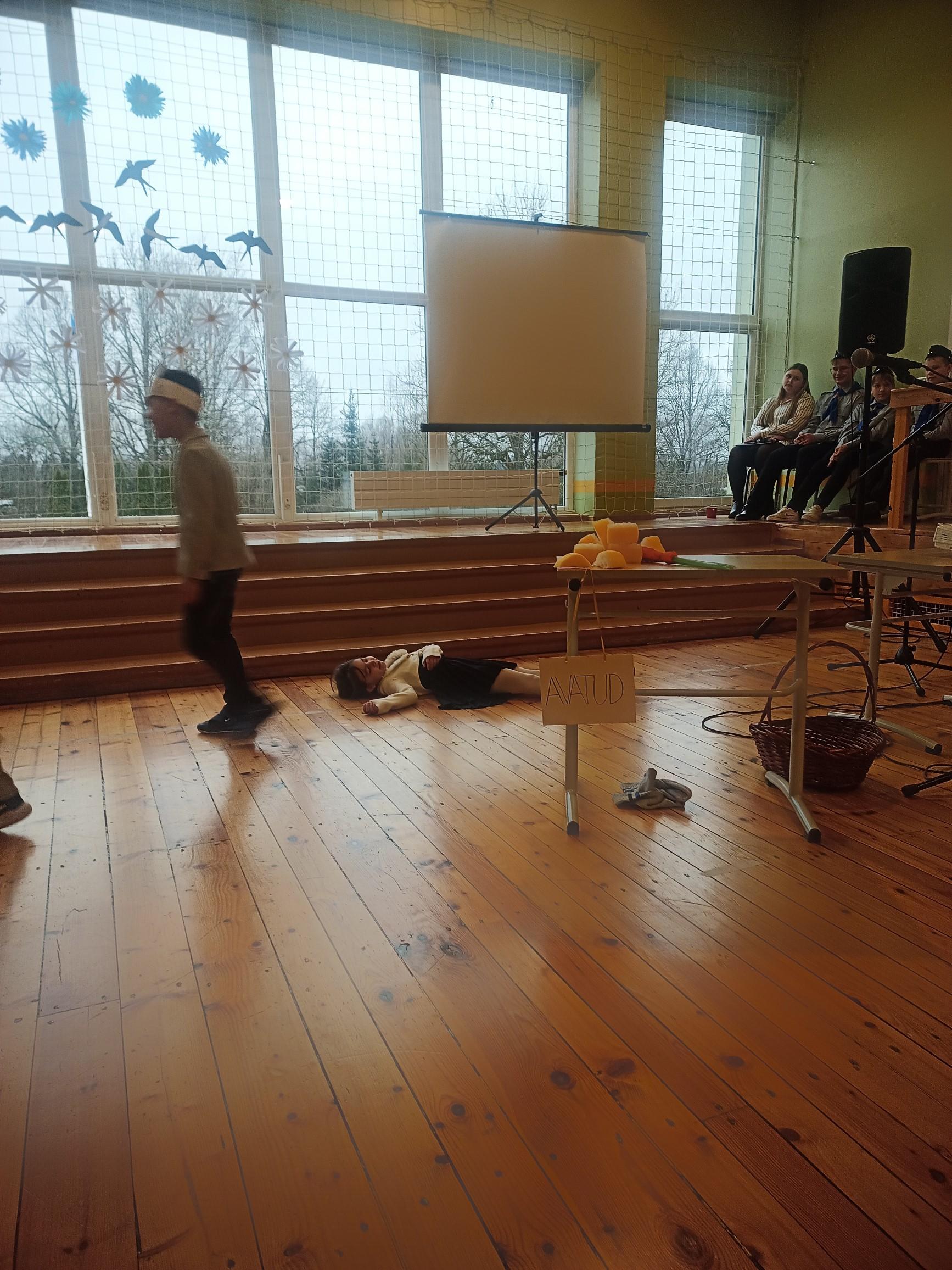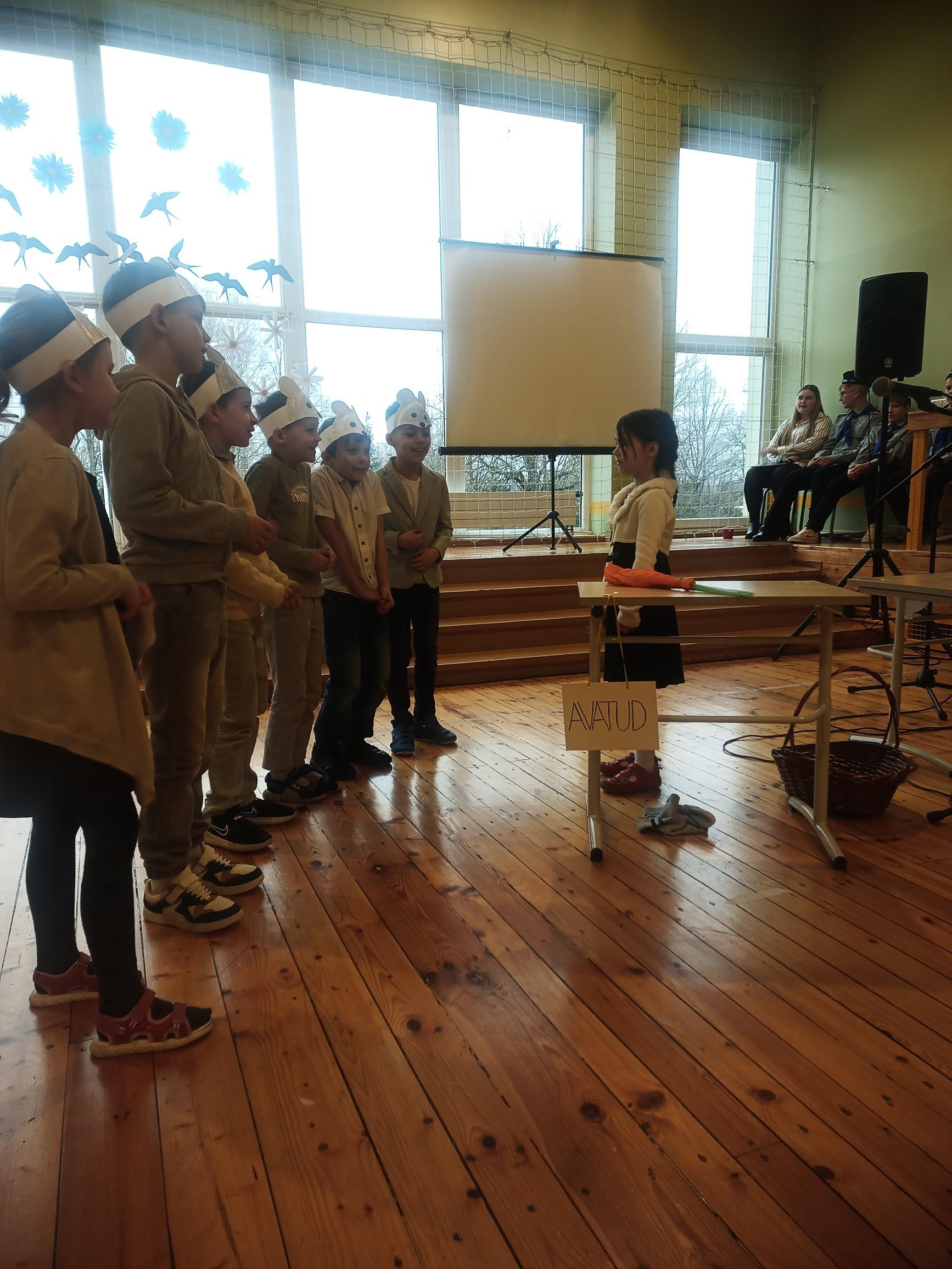 1. klassi näitetrupp esitas koomilise lühinäidendi "Kas teil juustu on?".