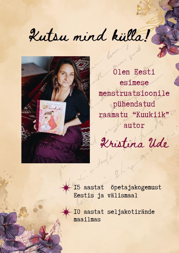 Täna oli Are Koolis külas Kristina Ude, kes viis läbi 1.-2. tunni ajal 4. ja 5.klassi tüdrukutele ning 3.-4. tunni ajal 6. ja 7.klassi tüdrukutele töötoad, kus ta rääkis ausalt ja avameelselt neiuks sirgumisega kaasnevatest võludest ja muutustest.