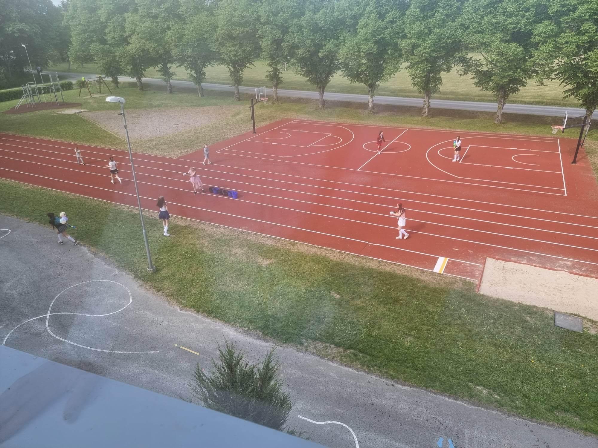 Veesõda kooliõuel ning peagi liikusid noored juba linna, et kohtuda teiste koolide tutipeolistega ja lustida enne pingelist eksamiperioodi.